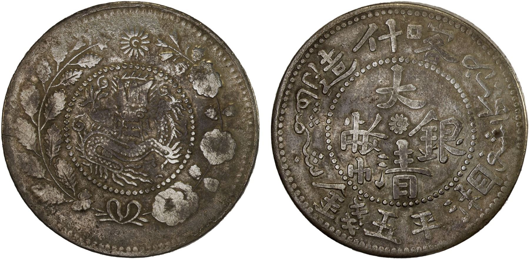 SINKIANG: Kuang Hsu, 1875-1908, AR 5 miscals, Kashgar, ND, Y-25, L&M-750, dragon facing, F-VF, ex Frank S. Robinson Collection.