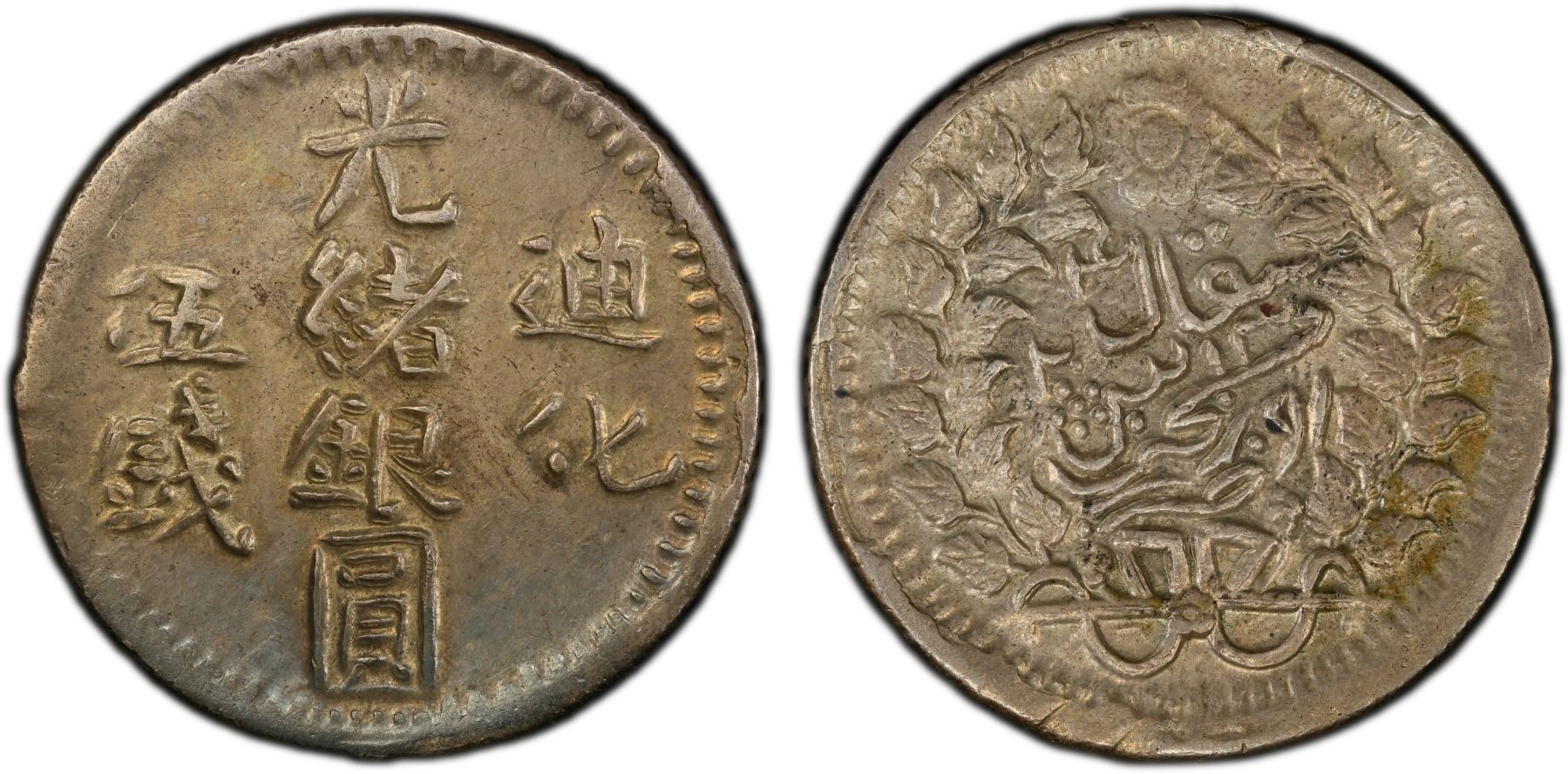 SINKIANG: Kuang Hsu, 1875-1908, AR 5 miscals, Urumchi (Dihwa), AH1324, PCGS AU58