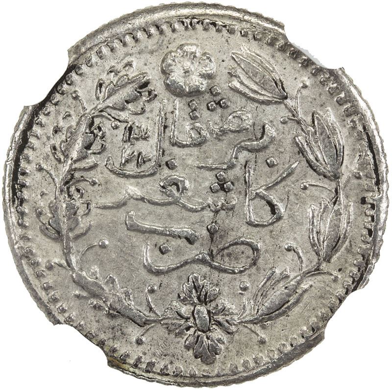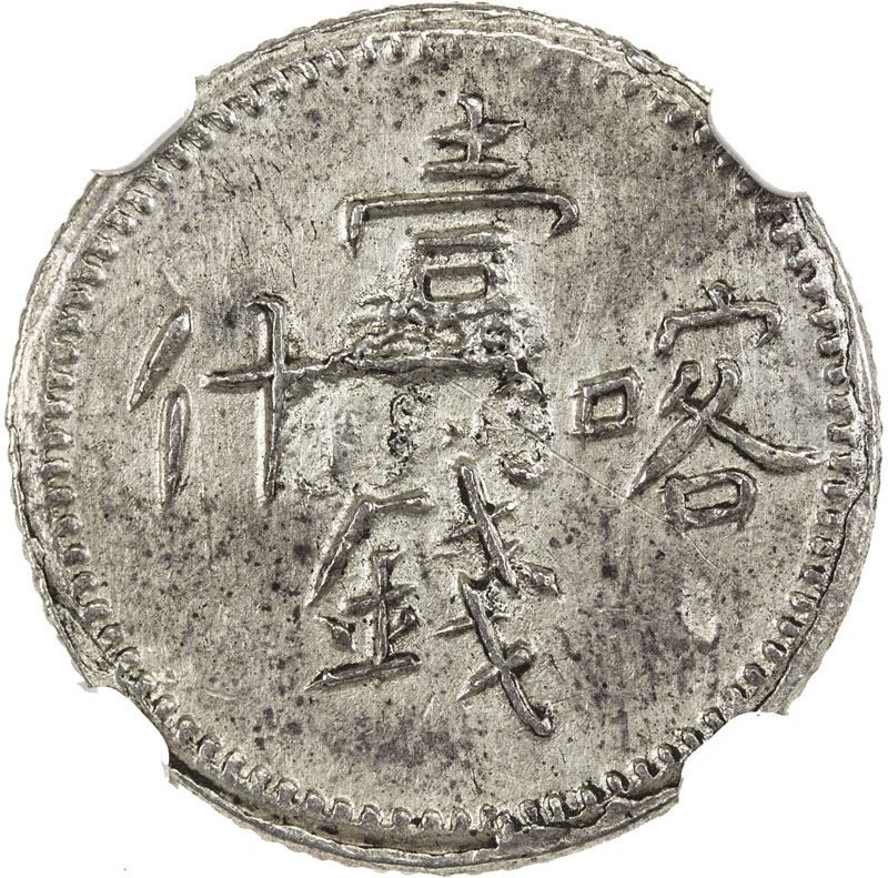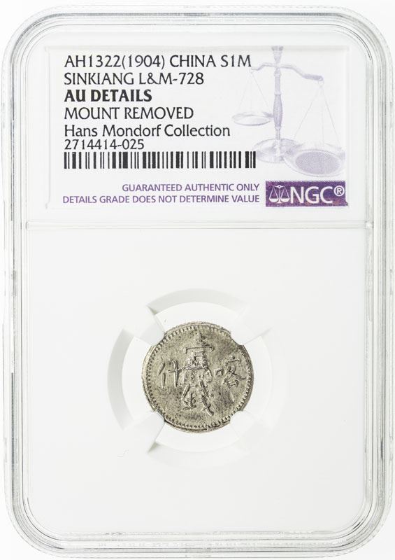 SINKIANG: Kuang Hsu, 1875-1908, AR miscal (mace), Kashgar, AH1322, Y-C16, L&M-728, button mount removed from obverse, NGC graded About Unc details, ex Hans Mondorf Collection.
