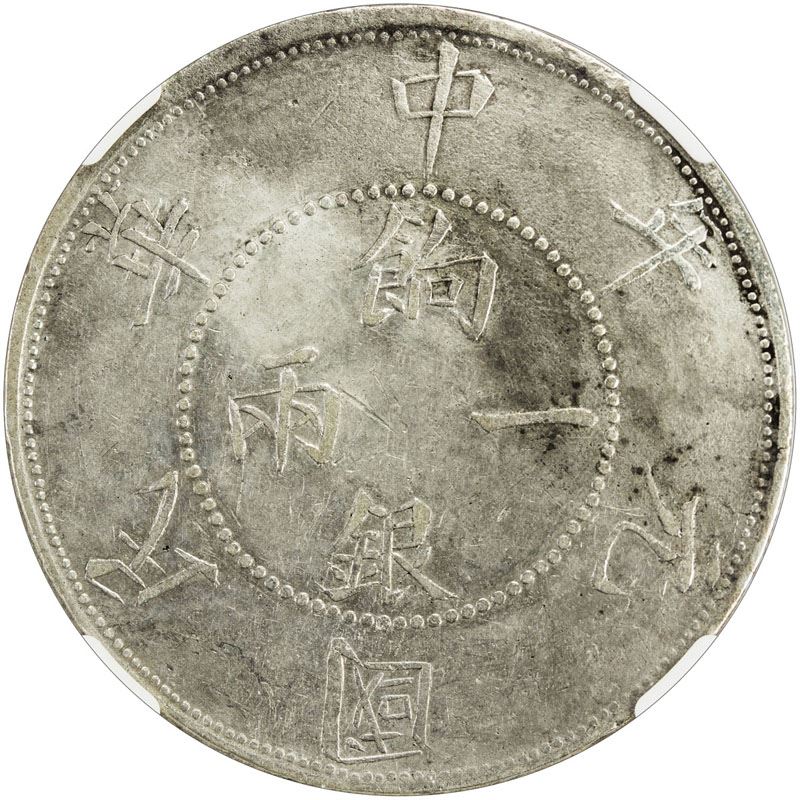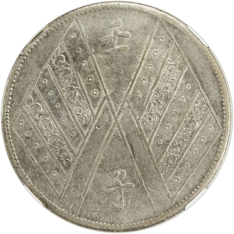 SINKIANG: Republic, AR sar (tael), year 1 (1912), Y-42, L&M-834, crossed flags, two stripes of arabesques in each flag, much original luster with uncertain 'repair' as per NGC, NGC graded About Unc details, ex Wéiduolìya Collection.