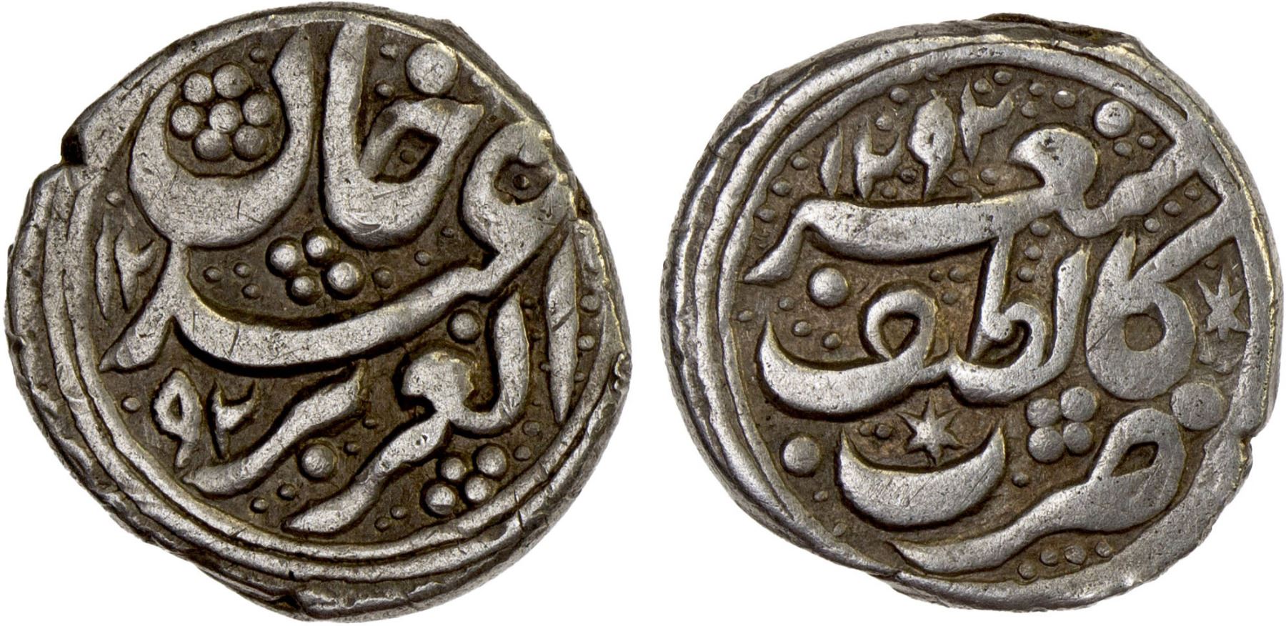 SINKIANG: Ya'qub Beg, Rebel, 1865-1877, AR 1/2 miscal, Kashgar, AH1292//1292, Cr-37-1.2, A-P3090, in the name of the Ottoman Abdul Aziz; excellent strike without any weakness, lovely VF.