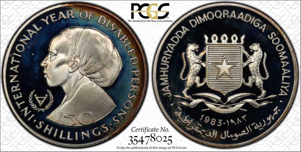 SOMALIA: Republic, AR 150 shillings, 1983, KM-38, International Year of Disabled Persons, PCGS graded PF67 DC, S.
