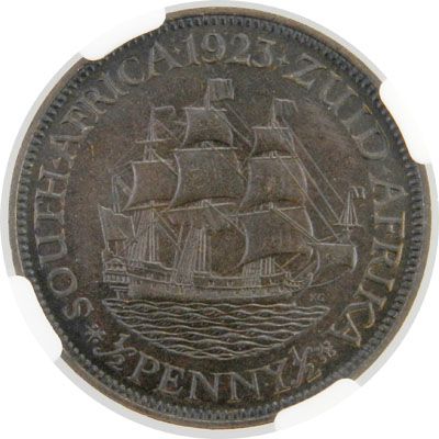 SOUTH AFRICA: George V, 1910-1936, AE ½ penny, 1923, KM-13.1, a superb example! NGC graded MS65 BR.