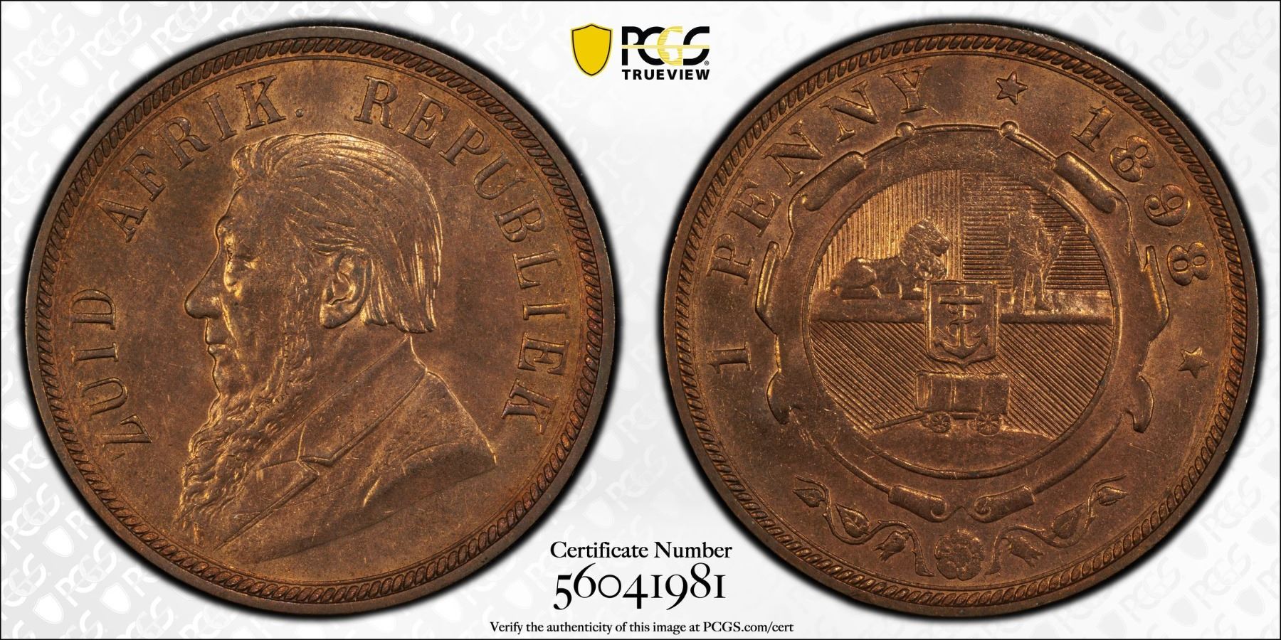 SOUTH AFRICA: Zuid-Afrikaansche Republiek, AE penny, 1898, KM-2, mostly red, PCGS graded MS63 RB, ex Almer H. Orr III Collection.