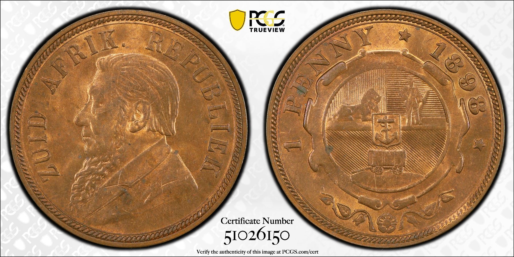 SOUTH AFRICA: Zuid Afrikaansche Republiek, AE penny, 1898, KM-2, Y-1, a wonderful example, PCGS graded MS64 RB, ex Almer H. Orr III Collection.