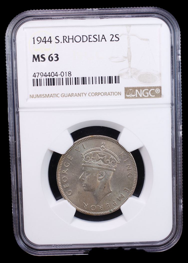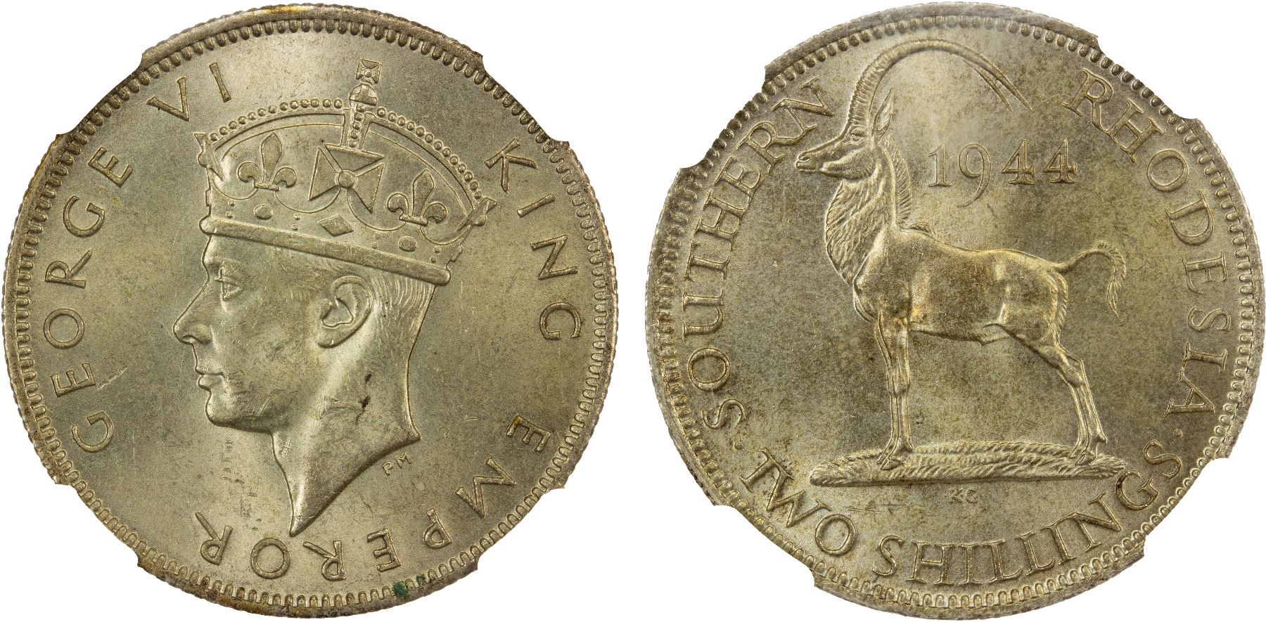 SOUTHERN RHODESIA: George VI, 1936-1952, AR 2 shillings, 1944, NGC MS63