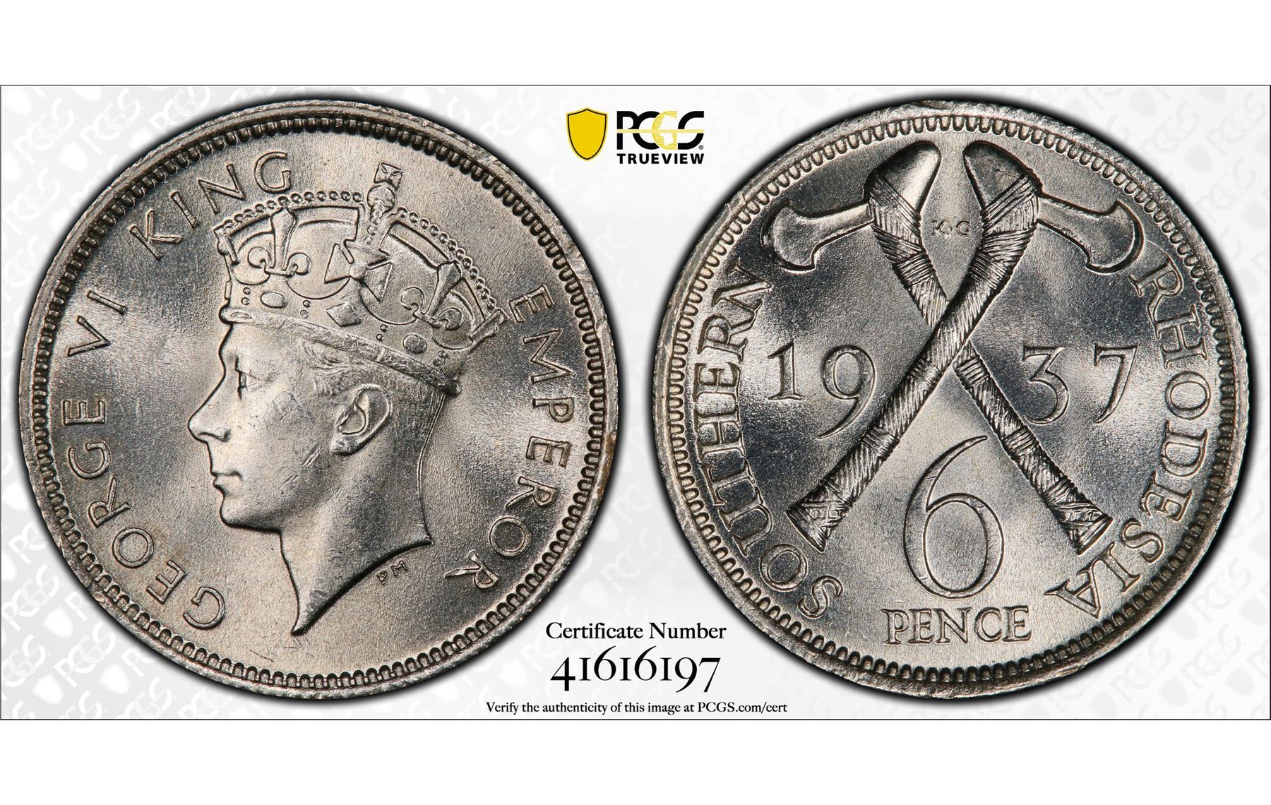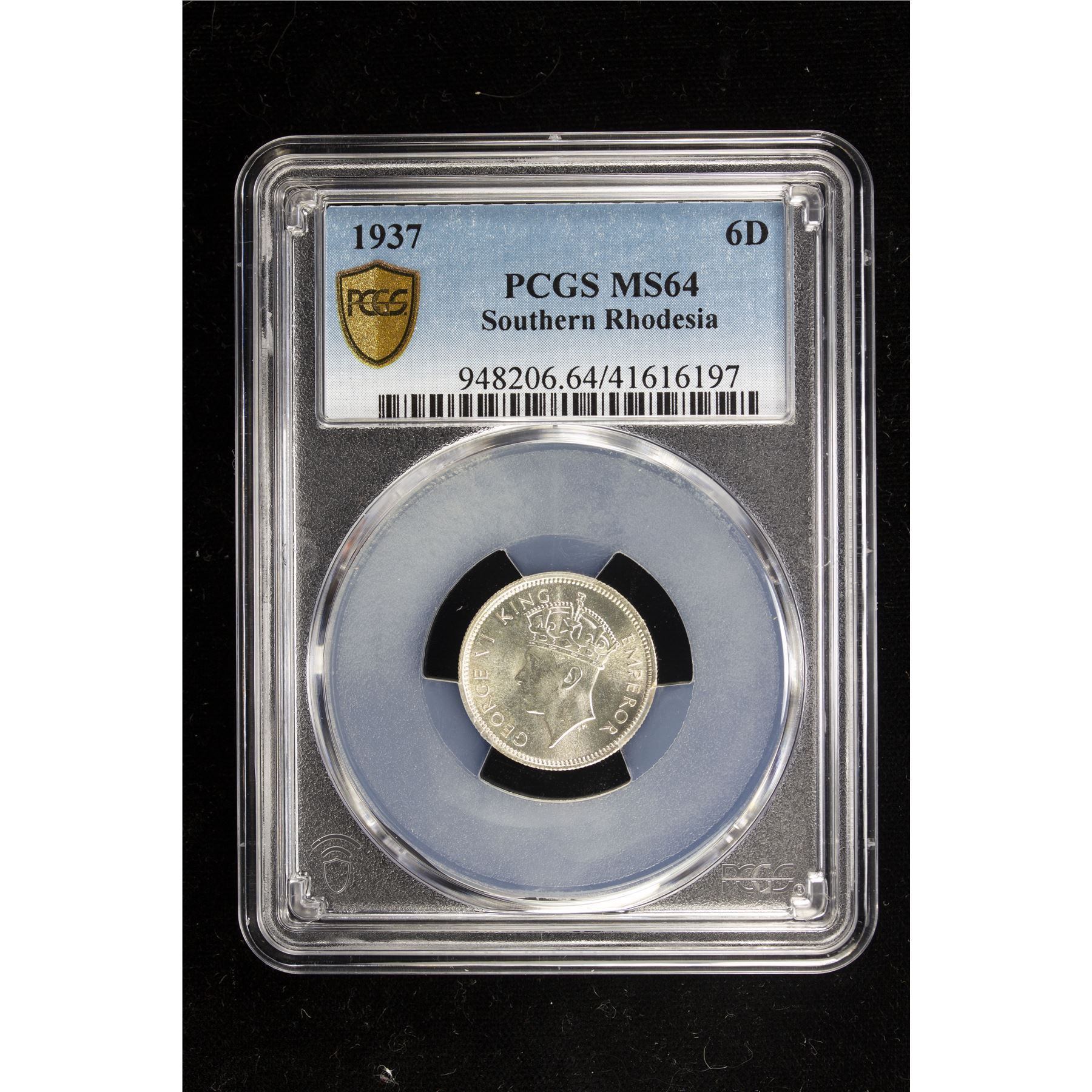 SOUTHERN RHODESIA: George VI, 1936-1952, AR 6 pence, 1937, KM-10, a wonderful quality example! PCGS graded MS64.