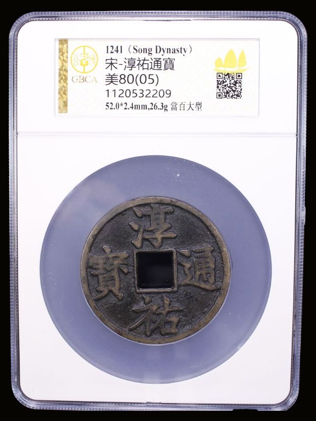 SOUTHERN SONG: Chun You, 1241-1252, AE 100 cash (26.3g), H-17.806, 52mm, large size flan, dang bai on reverse, graded 80(05) by GBCA Grading Company, natural flan crack, VF.
