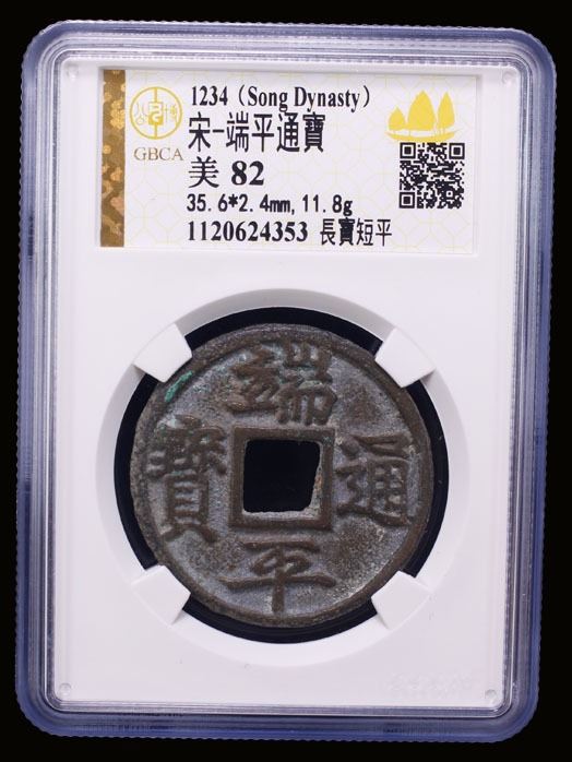 SOUTHERN SONG: Duan Ping, 1234-1236, AE 5 cash (11.8g), H-17.741, long bao type, graded 82 by GBCA Grading Company, VF-XF.