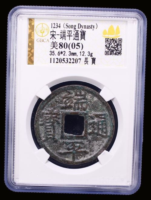SOUTHERN SONG: Duan Ping, 1234-1236, AE 5 cash (12.3g), H-17.741, long bao type, graded 80(05) by GBCA Grading Company, natural flan crack, VF.
