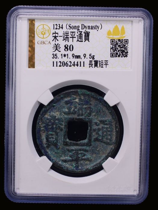 SOUTHERN SONG: Duan Ping, 1234-1236, AE 5 cash (9.5g), H-17.741, long bao type, graded 80 by GBCA Grading Company, VF.