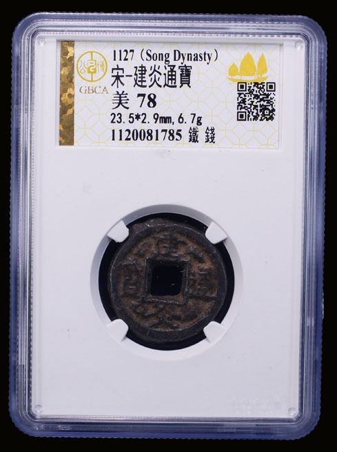 SOUTHERN SONG: Jian Yan, 1127-1130, iron cash (6.7g), H-17.24, Li script, graded 78 by GBCA Grading Company, F-VF, ex Daniel K. E. Ching Collection - Scott Semans Auction June 2, 1991, Lot 303.