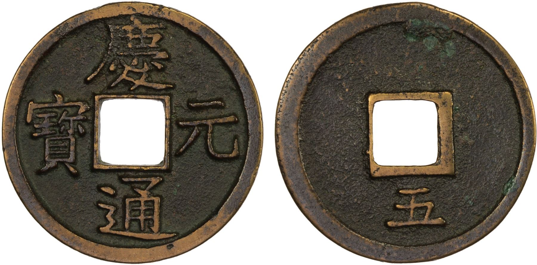 SOUTHERN SONG: Qing Yuan, 1195-1200, AE 5 cash (10g), year 5, VF-XF