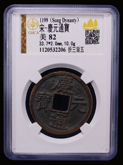 SOUTHERN SONG: Qing Yuan, 1195-1200, AE 5 cash (10g), year 5, H-17.446, graded 82 by GBCA Grading Company, natural flan crack, VF-XF.