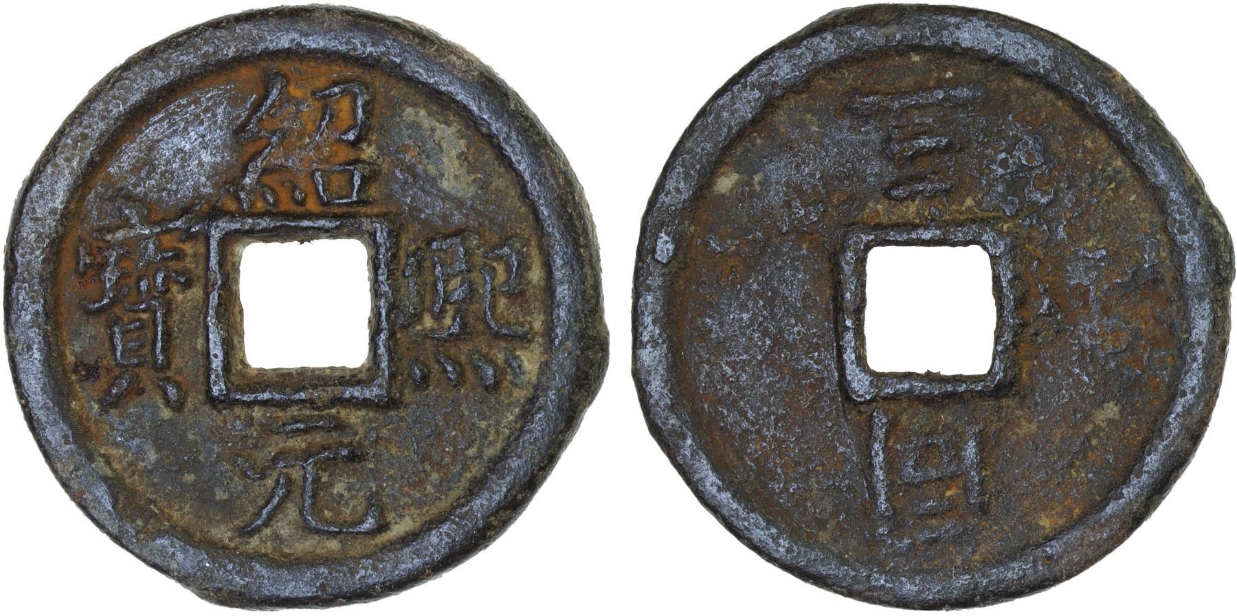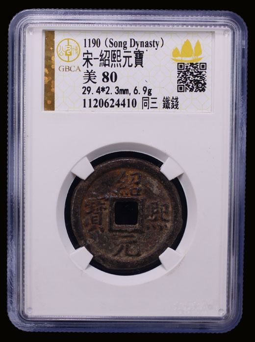 SOUTHERN SONG: Qing Yuan, 1195-1200, iron 2 cash (6.9g), Tongan Mint, Anhui Province, year 3, H-17.439, tong above on reverse, regnal year below, graded 80 by GBCA Grading Company, VF.