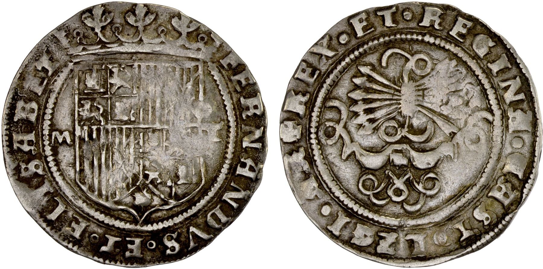 SPAIN: Fernando and Isabel, 1474-1504, AR real (3.36g), Toledo, ND, Fine