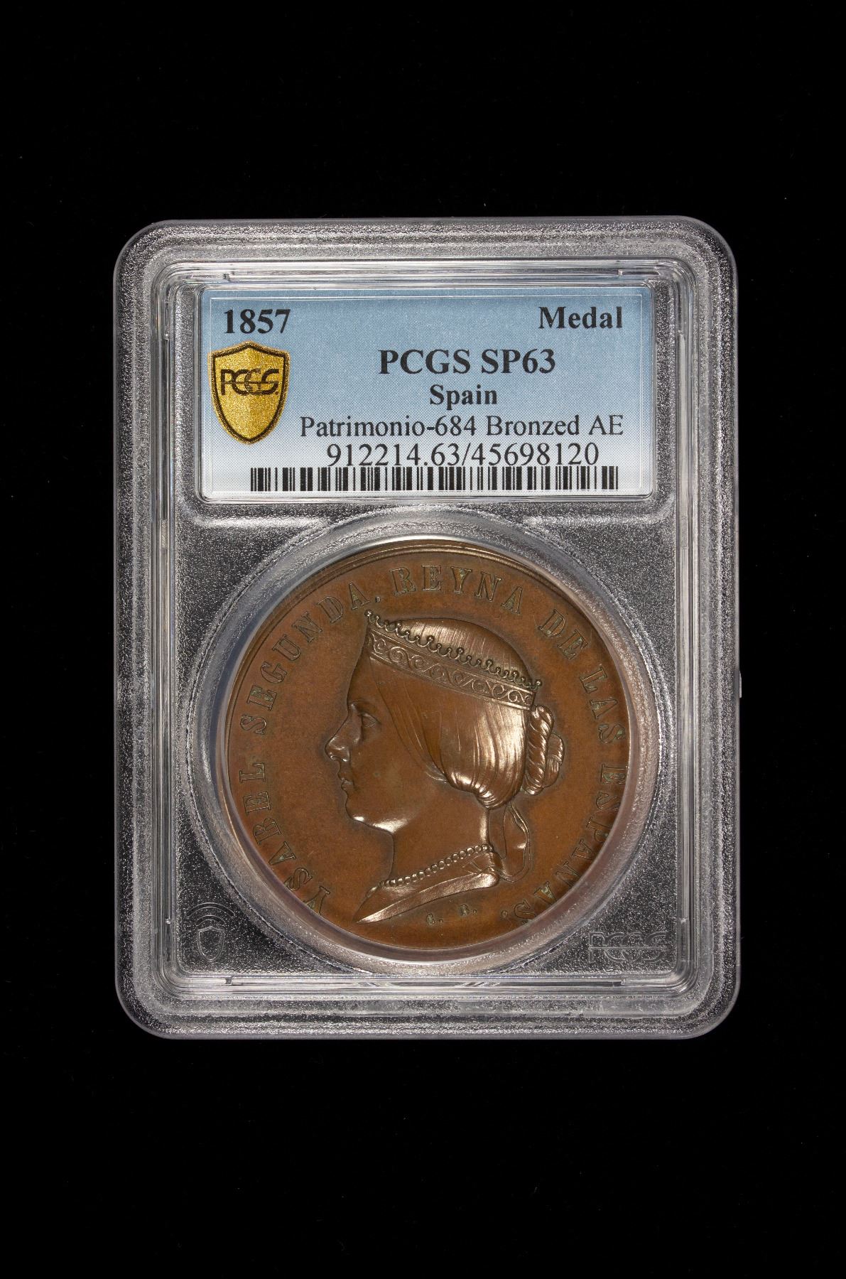 SPAIN: Isabel II, 1833-1868, AE medal, 1857, PCGS Specimen 63