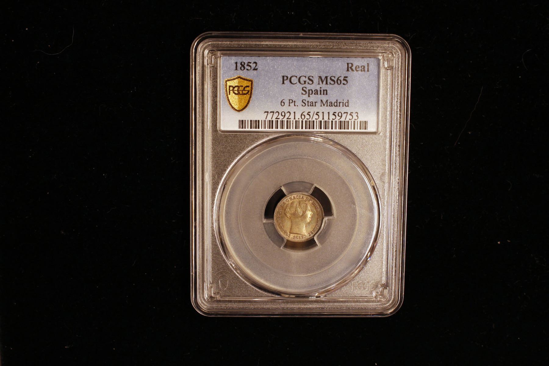 SPAIN: Isabel II, 1833-1868, AR real, Madrid, 1852, KM-598.2, a superb example, PCGS graded MS65.