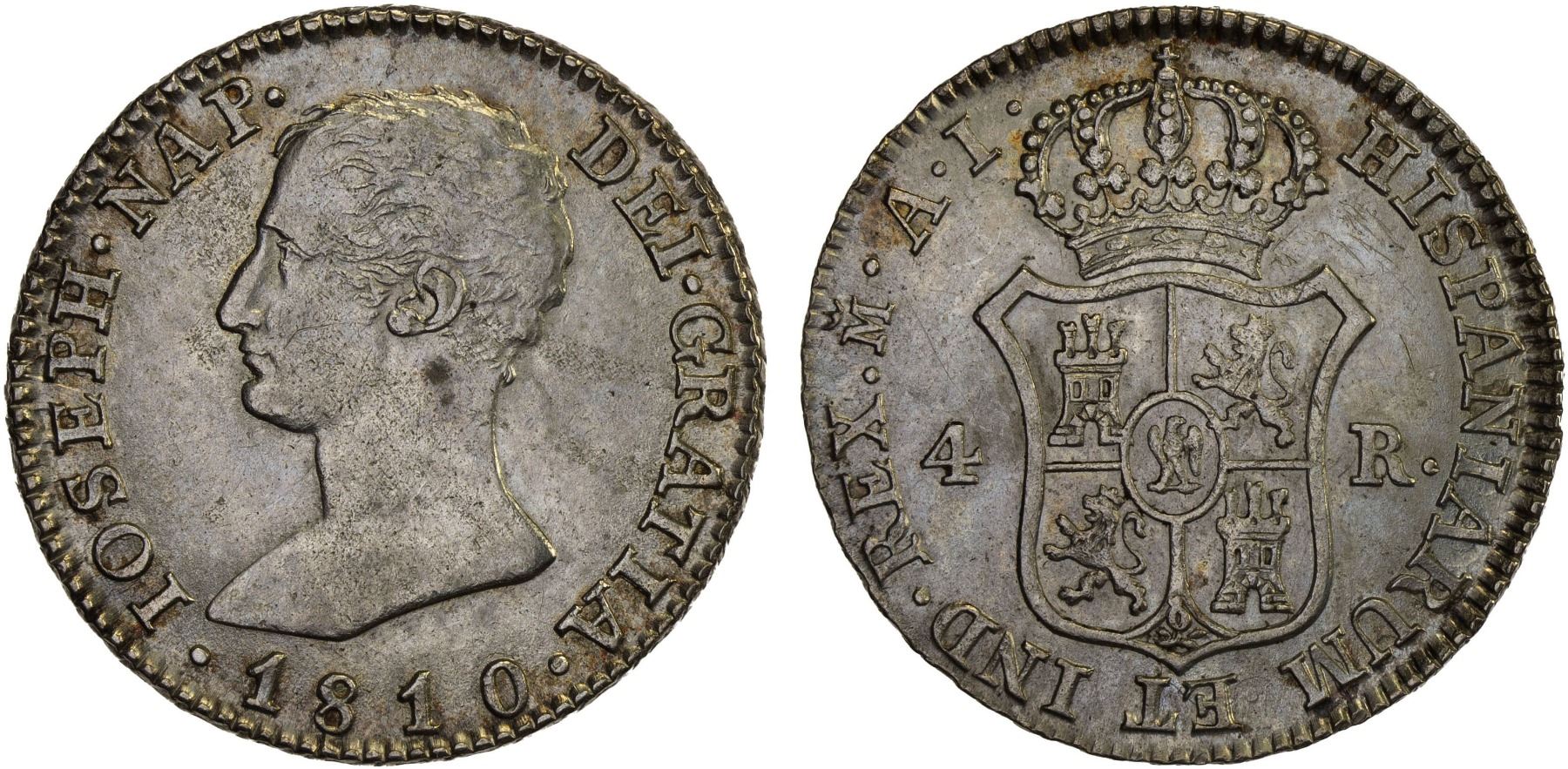 SPAIN: Jose Napoleon, 1808-1813, AR 4 reales, 1810-M, XF-AU