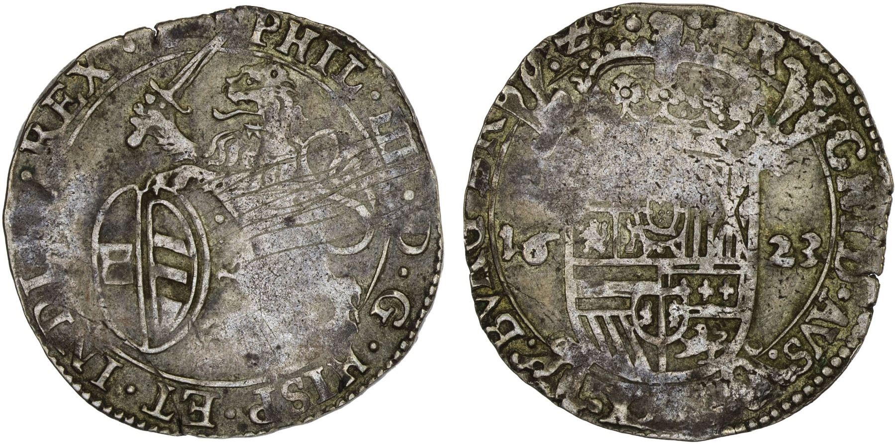SPANISH NETHERLANDS: Philip IV, 1621-1665, AR escalin, 1623, Fine
