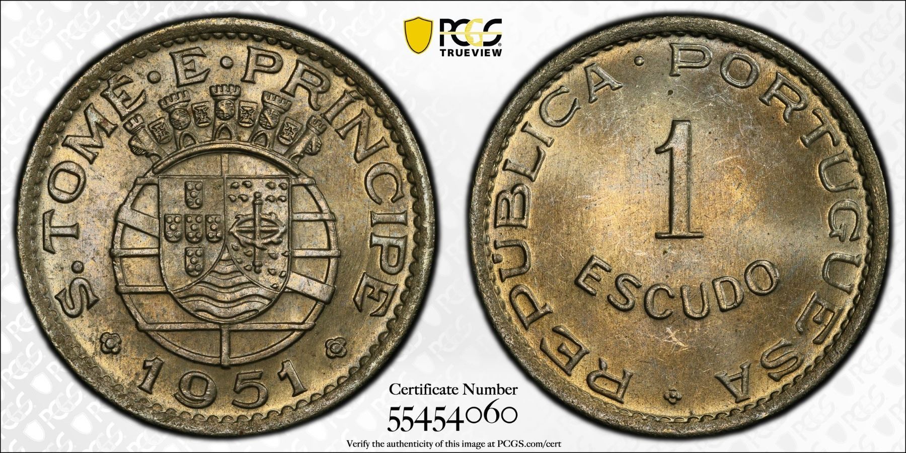 ST. THOMAS & PRINCE: Portuguese Colony, 1 escudo, 1951, PCGS MS64
