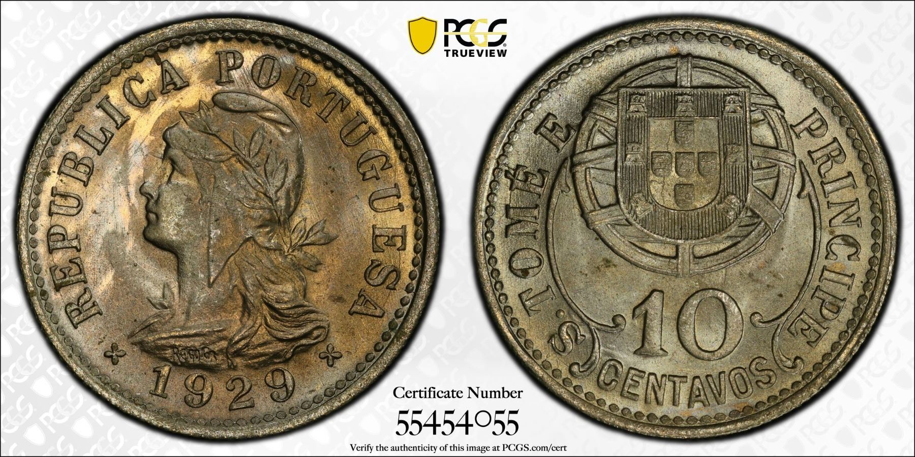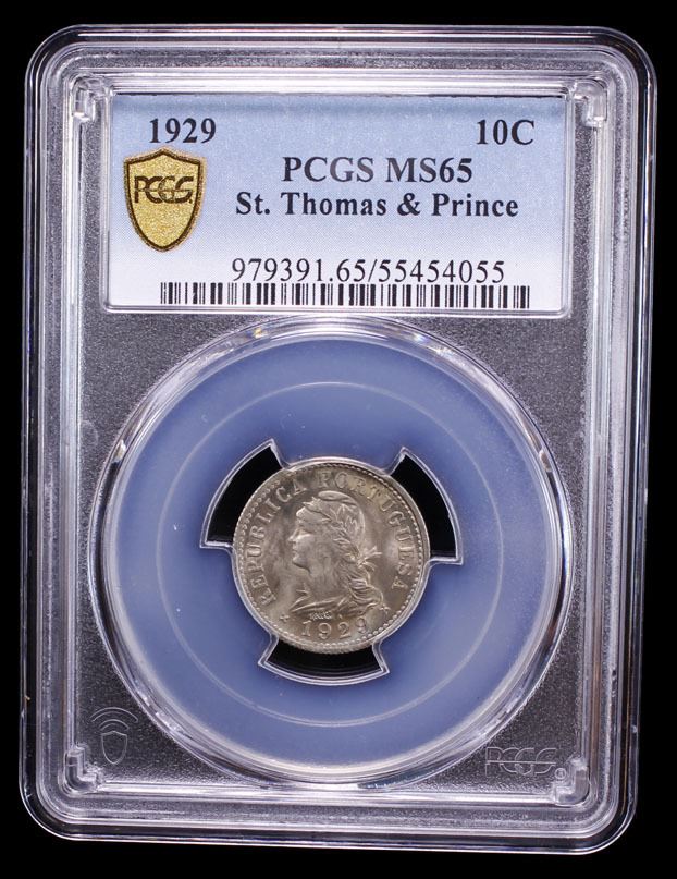 ST. THOMAS & PRINCE: Portuguese Colony, 10 centavos, 1929, PCGS MS65