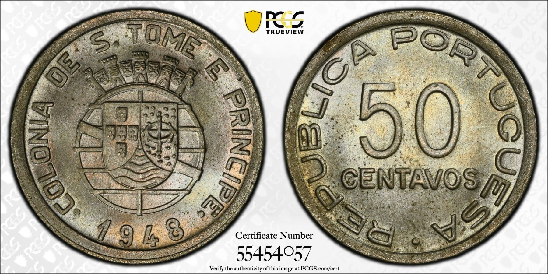 ST. THOMAS & PRINCE: Portuguese Colony, 50 centavos, 1948, PCGS MS64