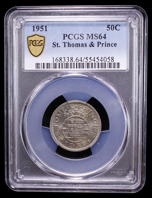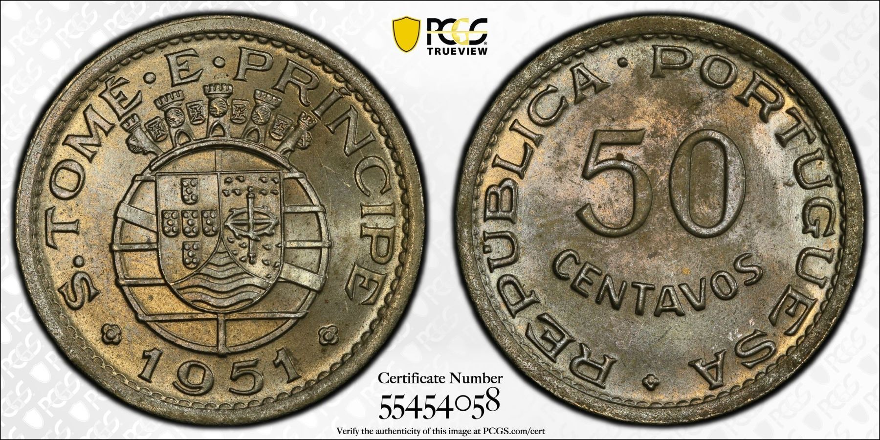 ST. THOMAS & PRINCE: Portuguese Colony, 50 centavos, 1951, PCGS MS64