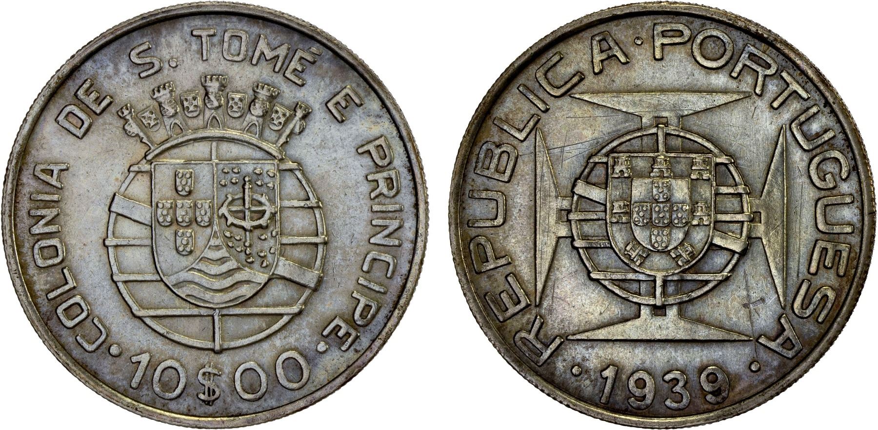 ST. THOMAS & PRINCE: Portuguese Colony, AR 10 escudo, 1939, AU