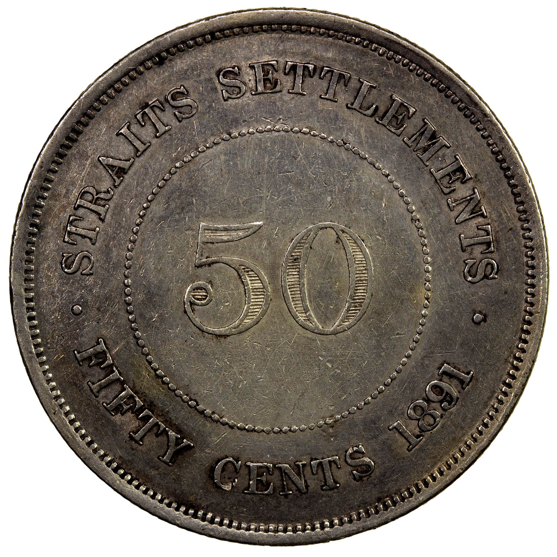 STRAITS SETTLEMENTS: Victoria, 1867-1901, AR 50 cents, 1891, KM-13, EF.
