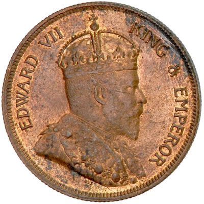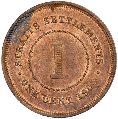 STRAITS SETTLEMENTS: Edward VII, 1901-1910, AE cent, 1908, KM-19, very minor carbon spots, as usual, red Unc.