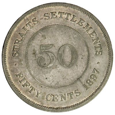 STRAITS SETTLEMENTS: Victoria, 1837-1901, AR 50 cents, 1897, KM-13, rare date, VF.
