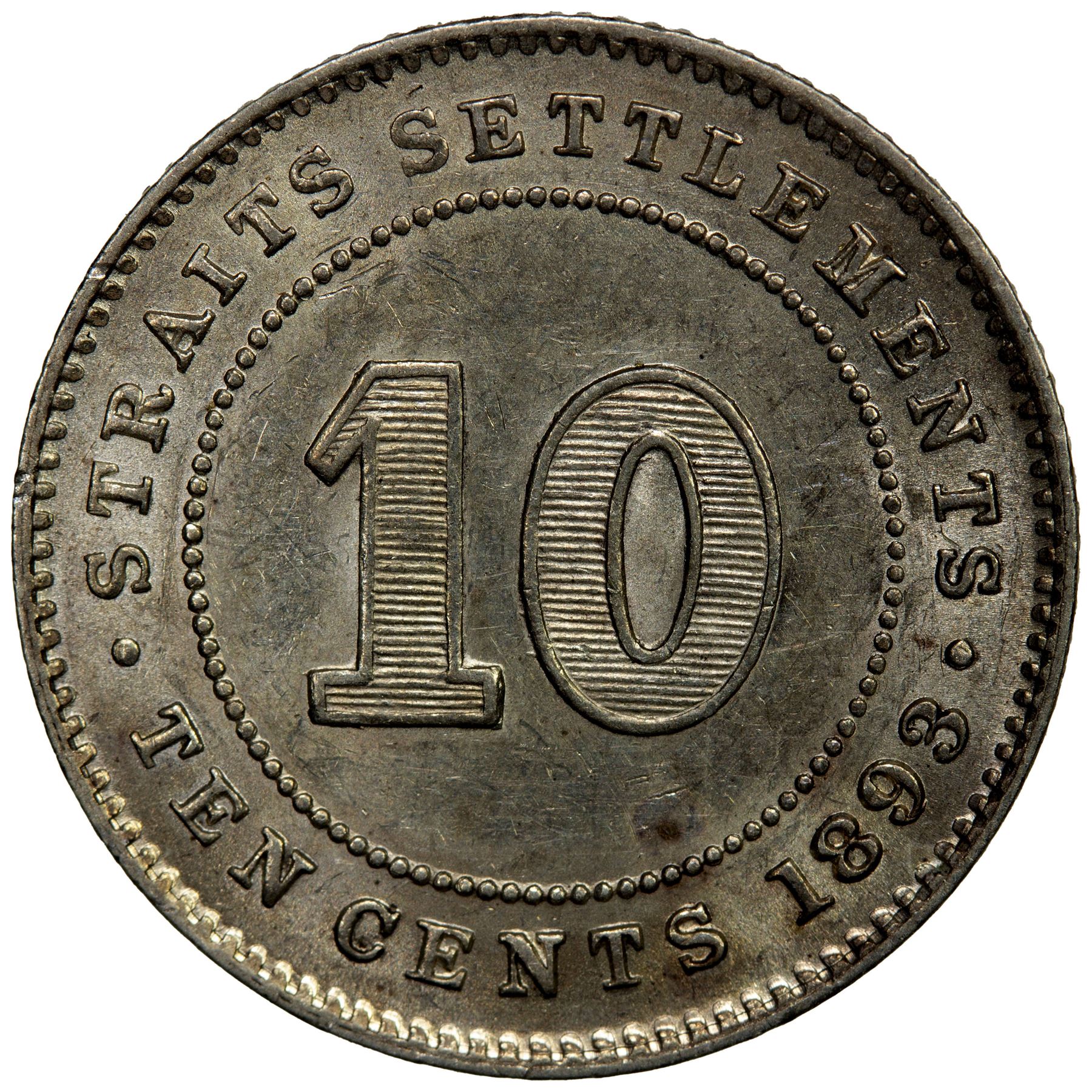 STRAITS SETTLEMENTS: Victoria, 1858-1901, AR 10 cents, 1893, AU