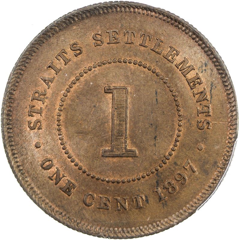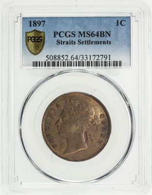 STRAITS SETTLEMENTS: Victoria, 1867-1901, cent, 1897, KM-16, PCGS graded MS64 BR.