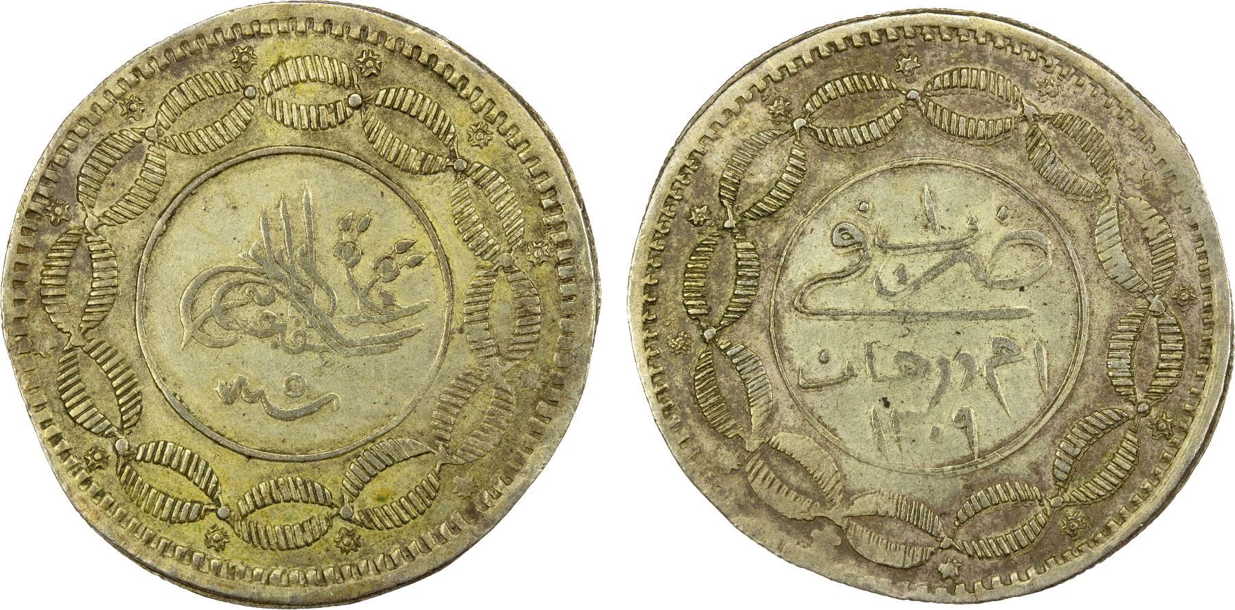 SUDAN: Abdullah b. Mohammed, 1885-1898, BI 20 piastres, Omdurman, AH1309 year 5, KM-7.2, variety with regnal year on obverse, with Hijri year & "1" on reverse, normal date, XF.