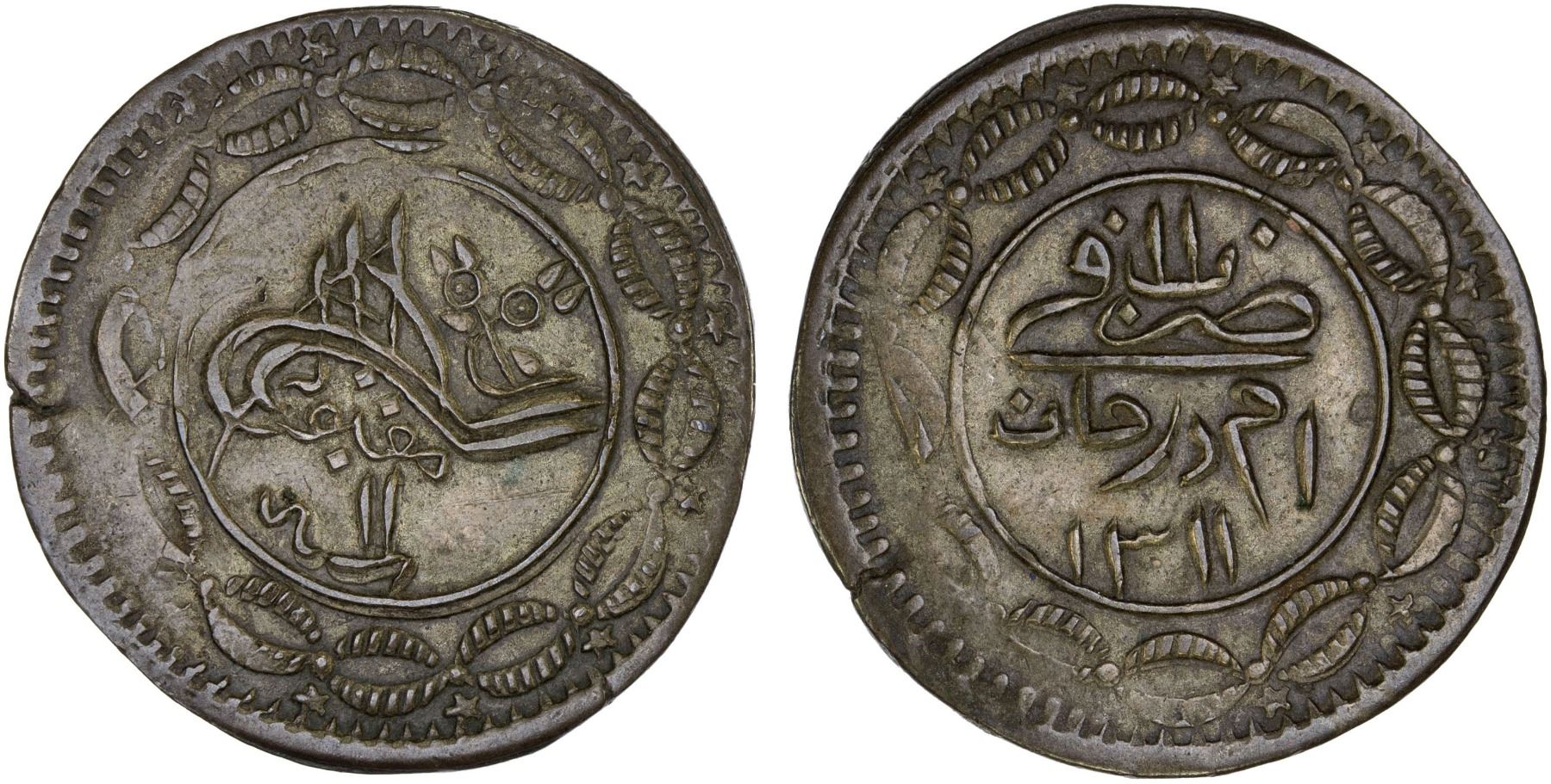 SUDAN: Abdullah b. Muhammad, 1885-1898, AR 5 piastres (4.25g), Omdurman, AH1311 year 11, KM-5.1, regnal year 11 repeated below the toughra, XF.
