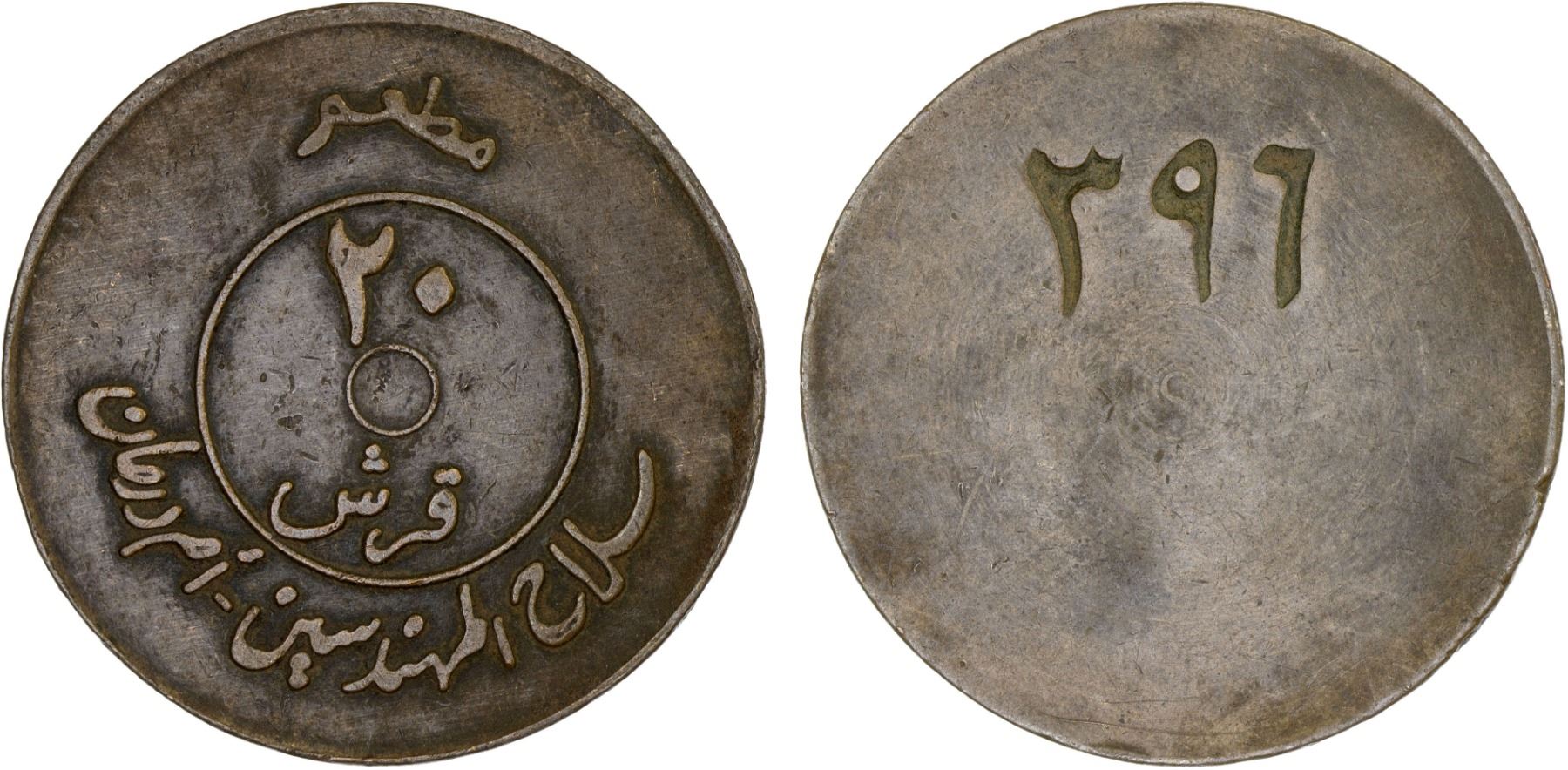 SUDAN: Army Corps of Engineers, AE 20 qirsh token (9.86g), ND (ca. 1990), 33mm bronze token for the Canteen of the U. S. Army Corps of Engineers in Omdurman, small central circle with "20" in Arabic text above and more text below, all within another inner circle with Arabic text all around // "396" in incuse Arabic numerals, rare, VF, ex Dr. Wolfgang Schuster Collection. The U. S. Army Corps of Engineers (USACE) was involved in infrastructure projects in Sudan, particularly during the era of the Military Civic Action (MCA) program in sub-Saharan Africa from 1985 to about 1995. This program, part of the broader Africa Civic Action initiative, saw the Corps build schools, medical clinics, and other infrastructure in remote areas.