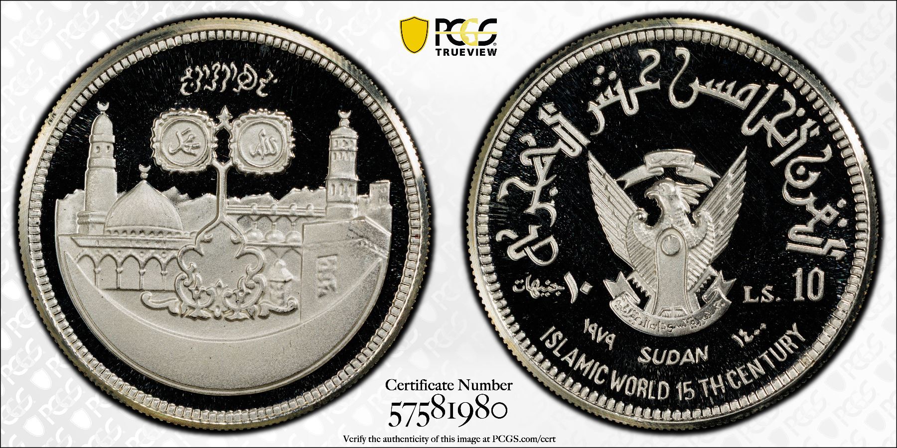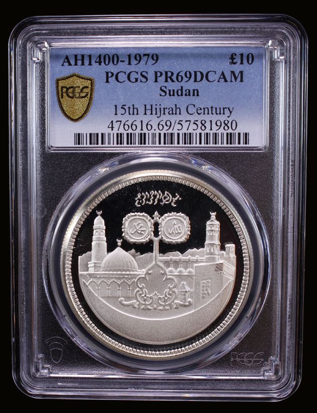 SUDAN: Republic, AR 10 pounds, 1979/AH1400, KM-81, 15th Century of Islam, PCGS graded PF69 Deep Cameo.