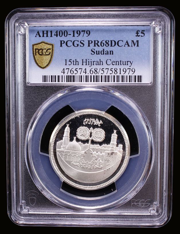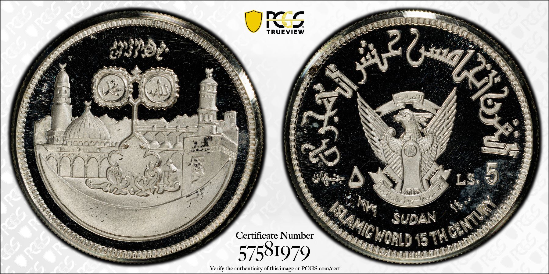 SUDAN: Republic, AR 5 pounds, 1979/AH1400, KM-80, 15th Century of Islam, PCGS graded PF68 Deep Cameo.