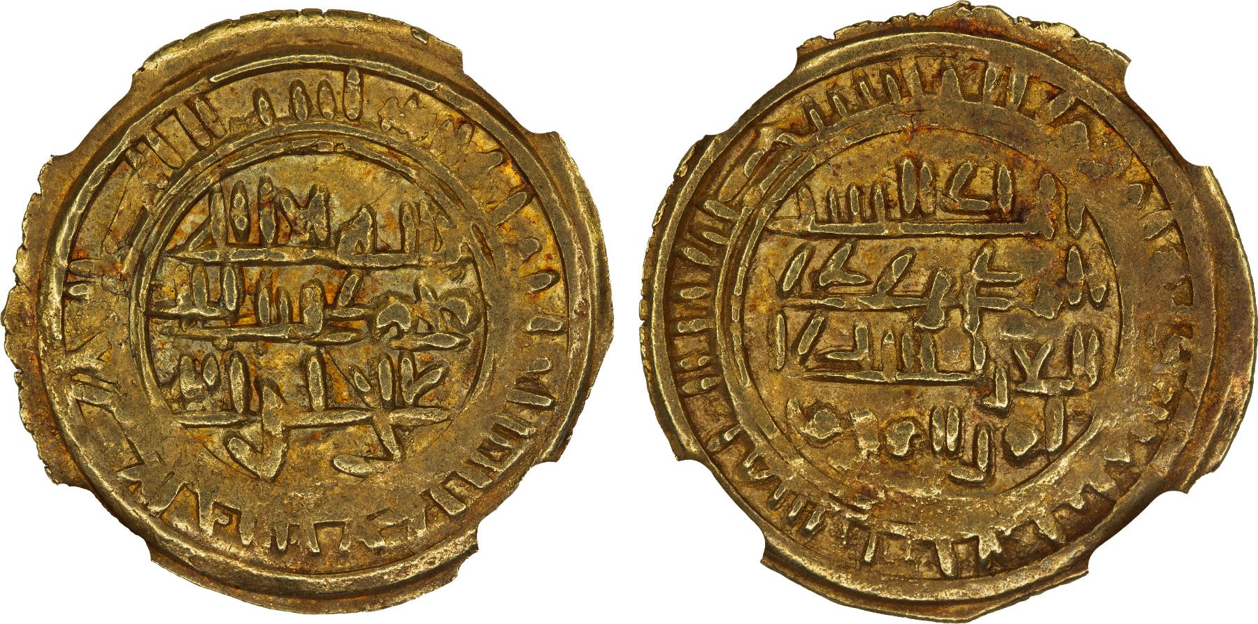 SULAYHID: al-Mukarram Ahmad, 1081-1091, AV dinar (2.30g), 'Adan, blundered date, A-1076, AU58.
