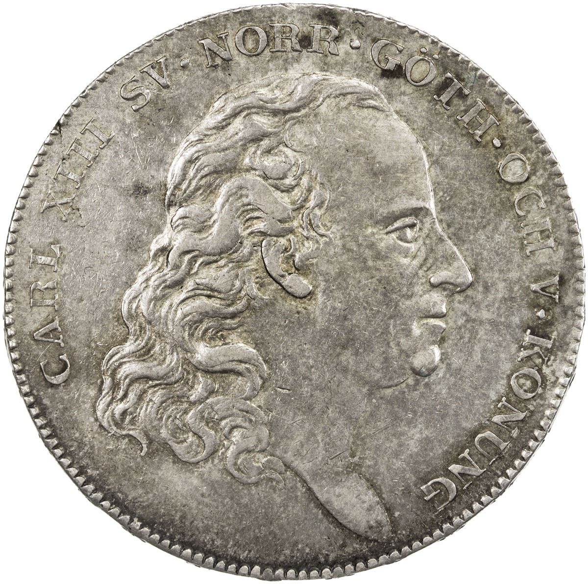 SWEDEN: Carl XIII, 1809-1818, AR riksdaler, 1816, KM-588, SM14, initials OL, light reverse scratch, lightly toned, EF, Ex Dr. John Lund Collection.