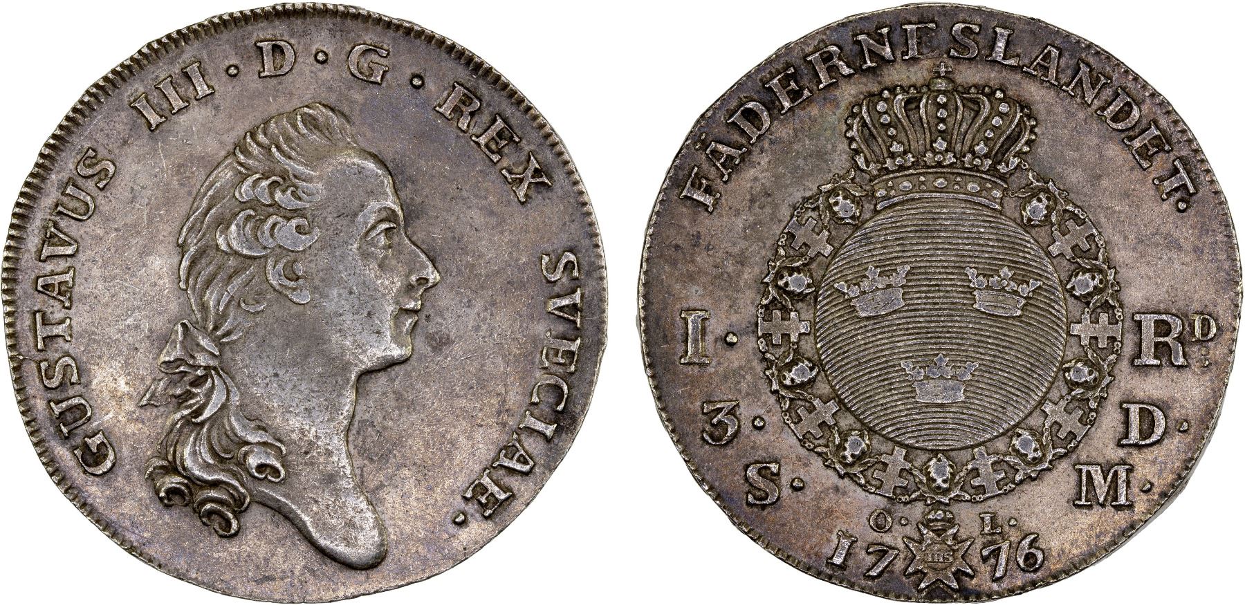 SWEDEN: Gustaf III, 1771-1792, AR riksdaler, 1776, XF