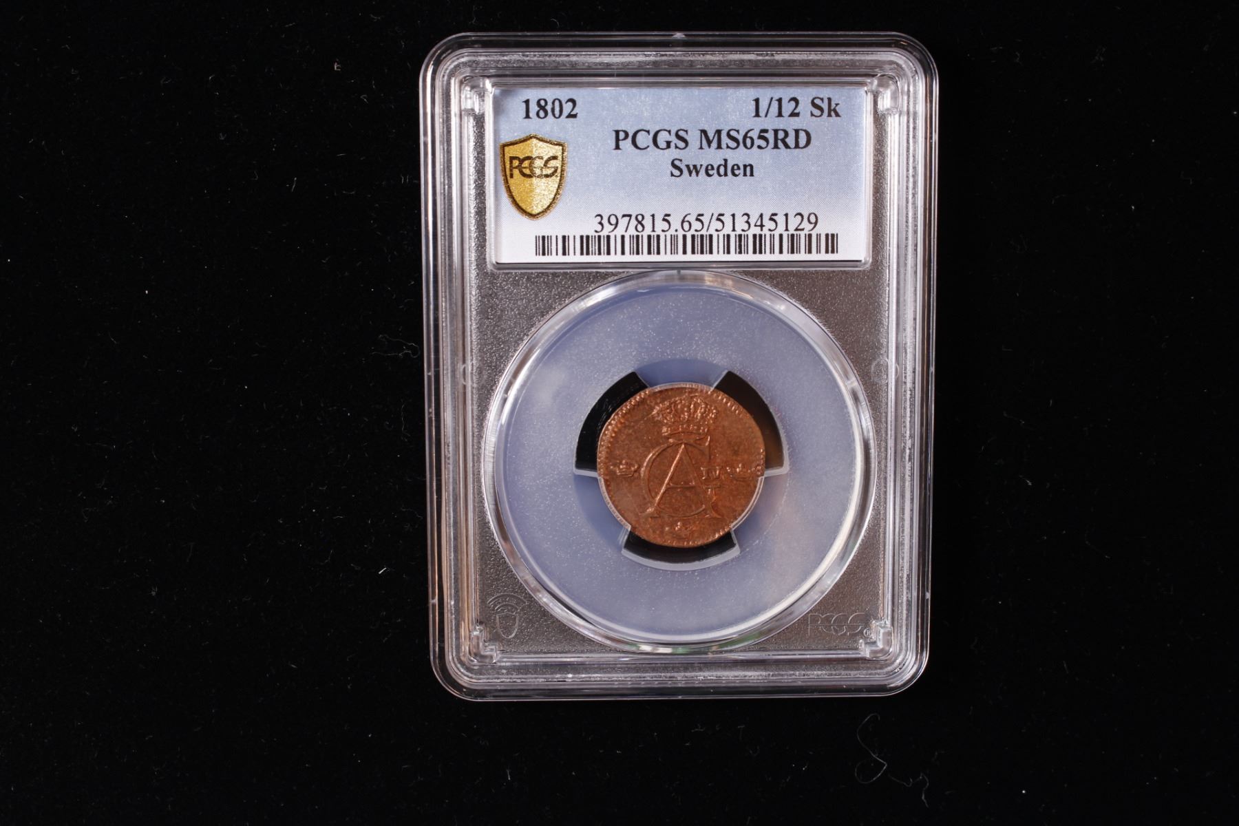 SWEDEN: Gustaf IV Adolf, 1792-1809, AE 1/12 skilling, 1802, PCGS MS65 RD