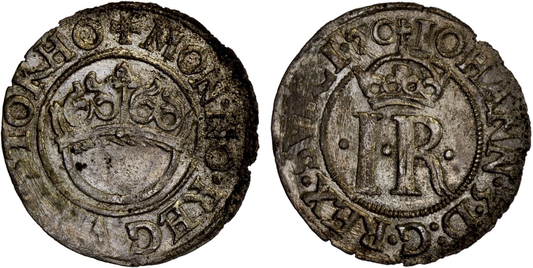 SWEDEN: Johan III, 1568-1592, AR öre (1.24g) (15)70, SM-91, light oxidation, light obverse tooling, lustrous, Unc.