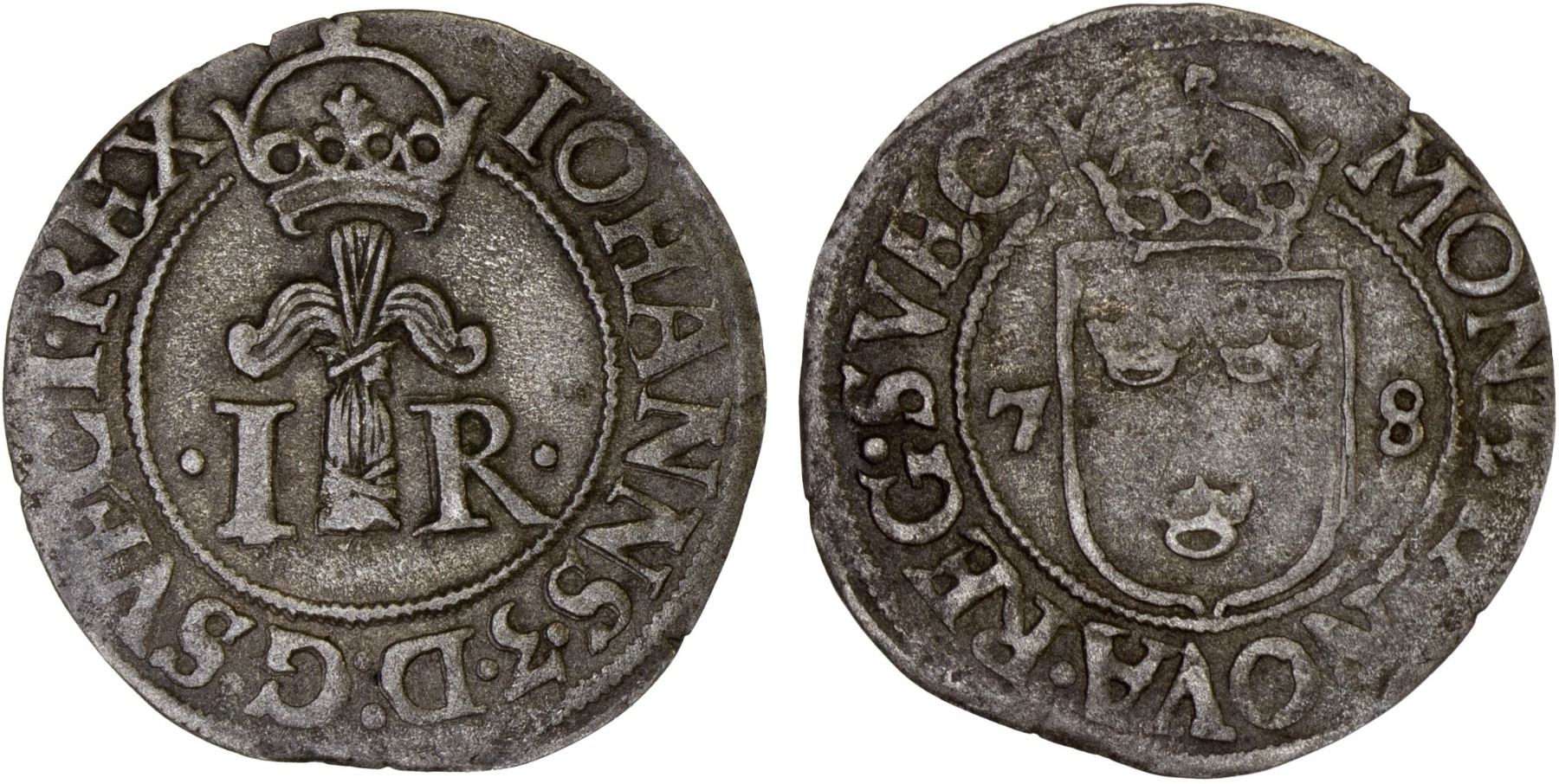 SWEDEN: Johan III, 1568-1592, BI 1/2 ore, Stockholm, 1578, VF