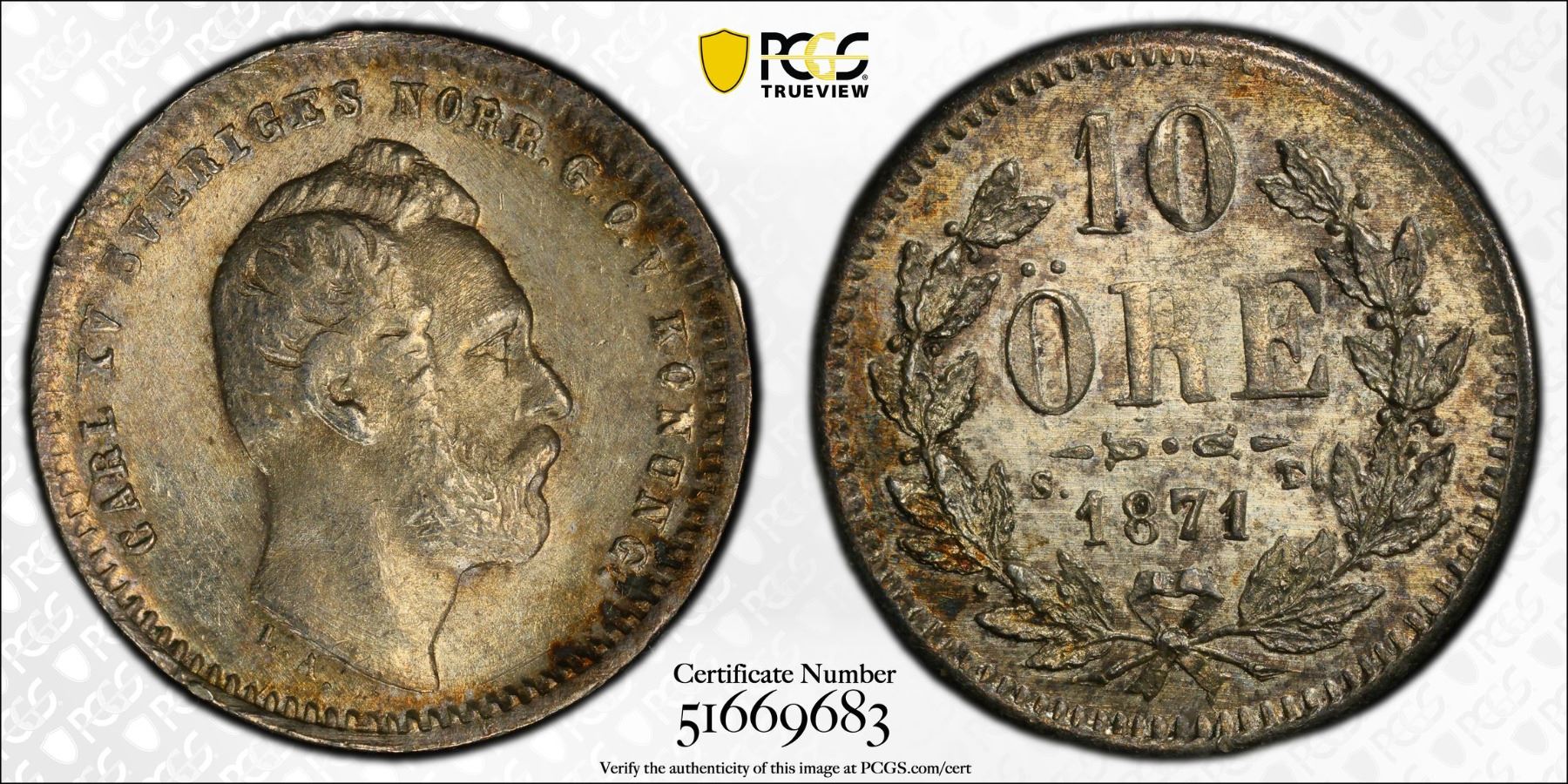SWEDEN: Oscar II, 1872-1907, AR 10 ore, 1871, KM-710, a pleasant mint state example!