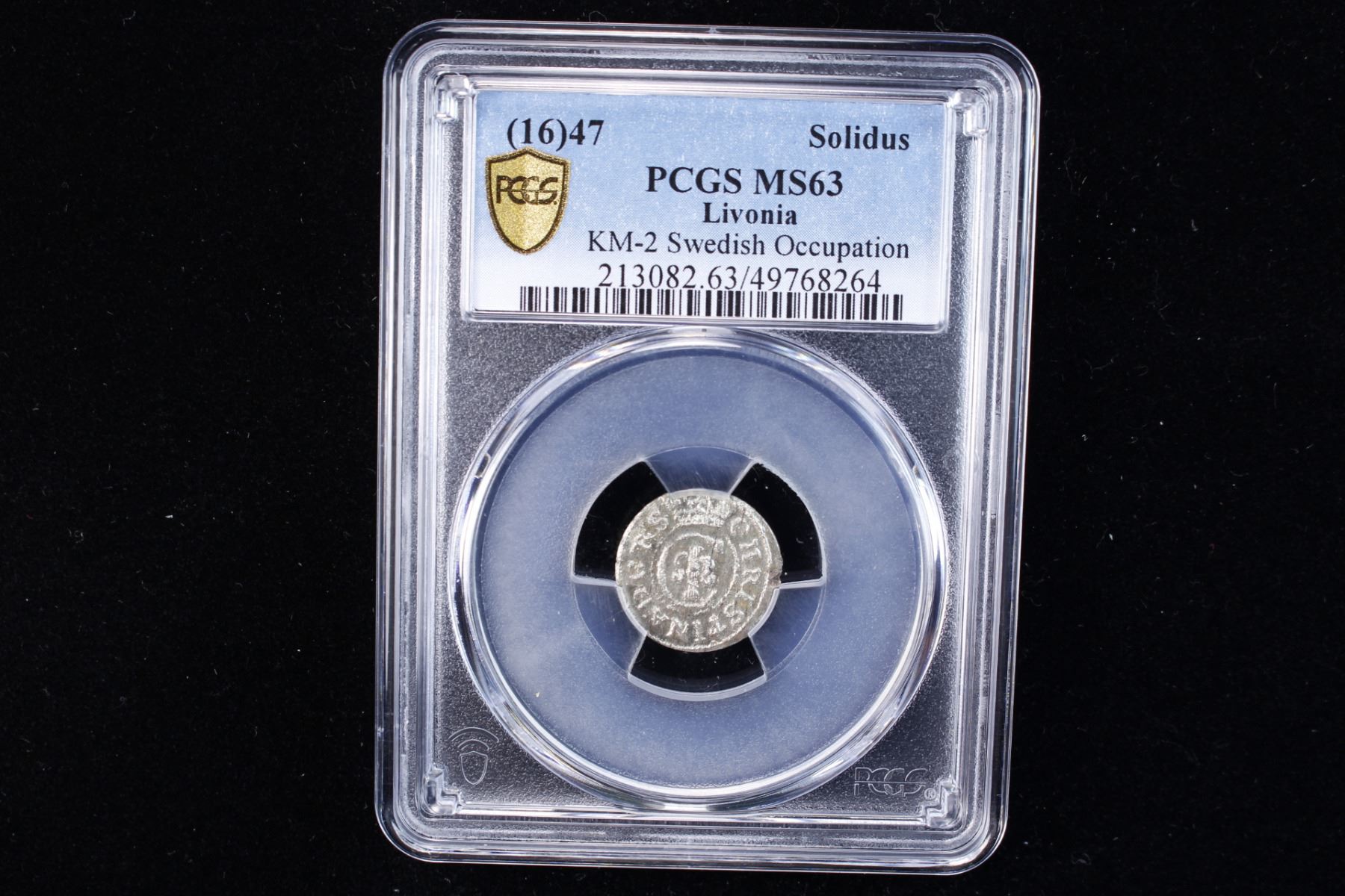 SWEDISH LIVONIA: Christina, 1632-1654, AR solidus, Riga, [16]47, PCGS MS63