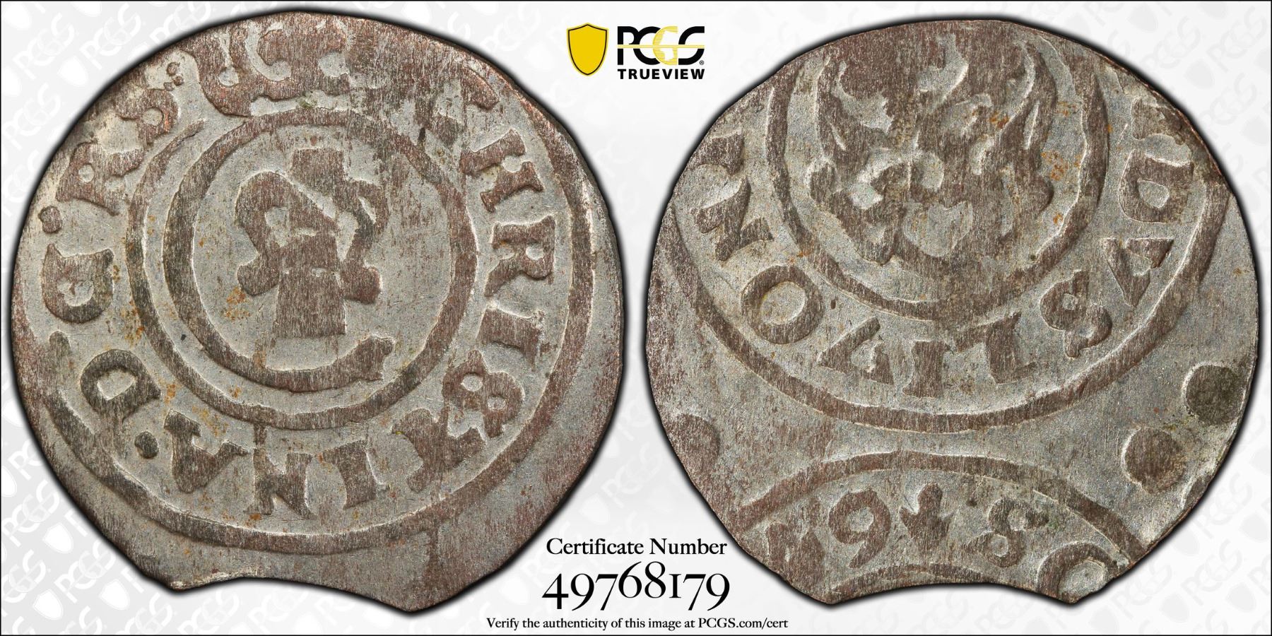 SWEDISH LIVONIA: Christina, 1632-1654, AR solidus, Riga, [16]49, PCGS MS62
