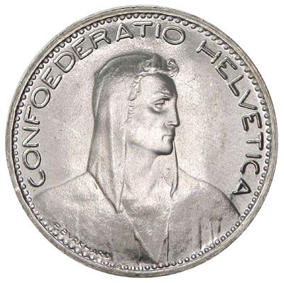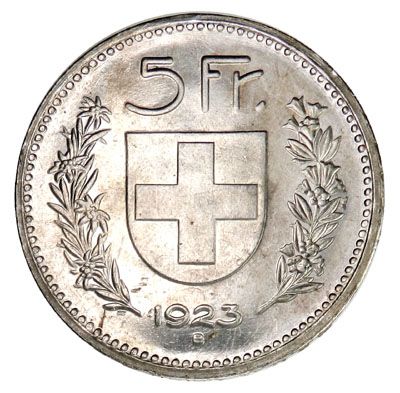 SWITZERLAND: AR 5 francs, 1923, KM-37, Dav-393, large size type, choice Unc.