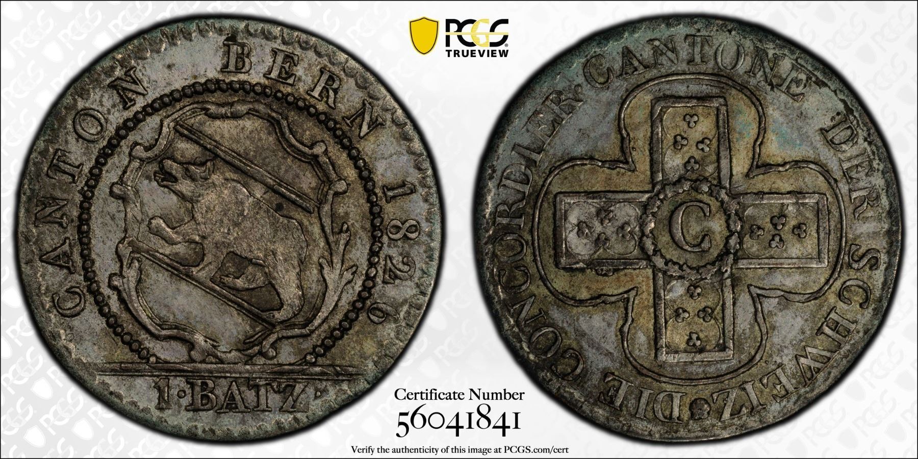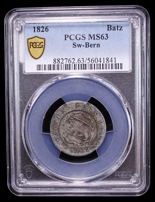 SWITZERLAND: BERN: Canton, BI batzen, 1826, PCGS MS63